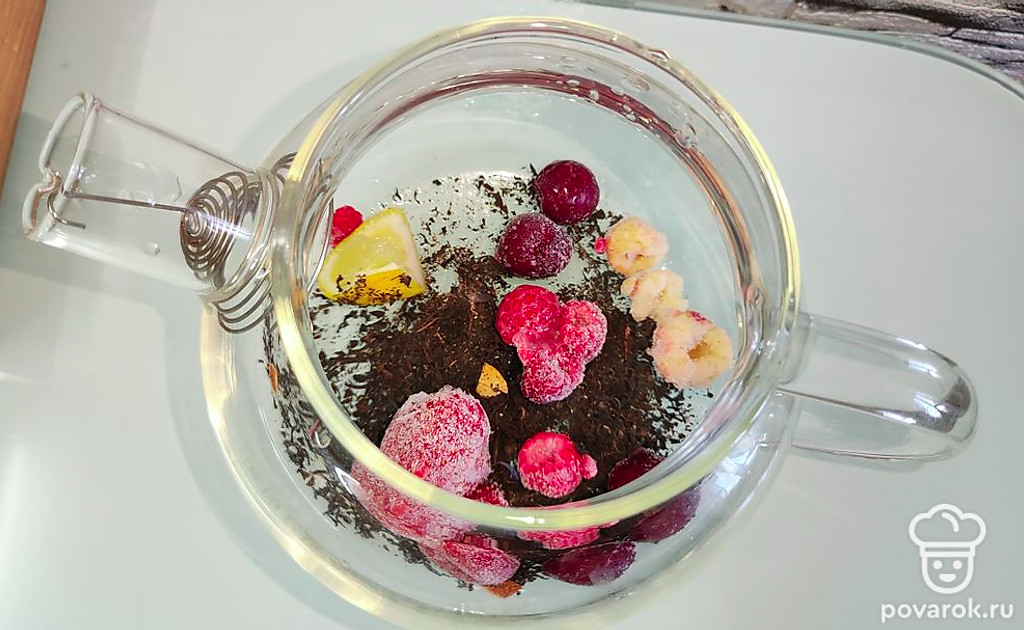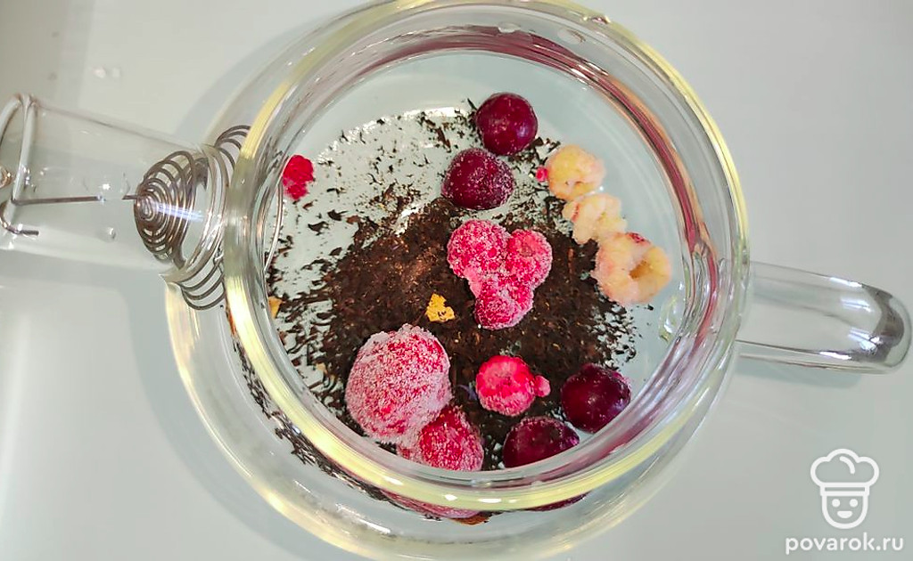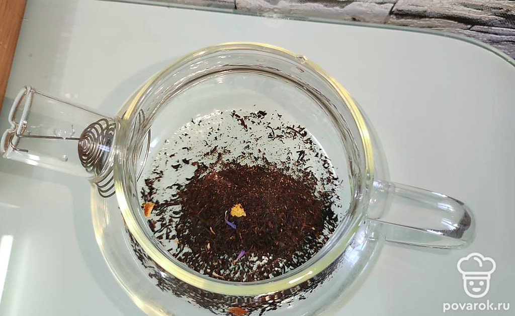 В заварочный чайник добавьте крупнолистовой черный чай.