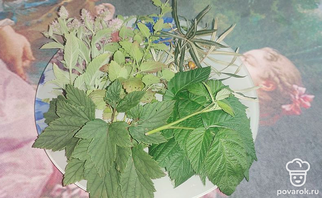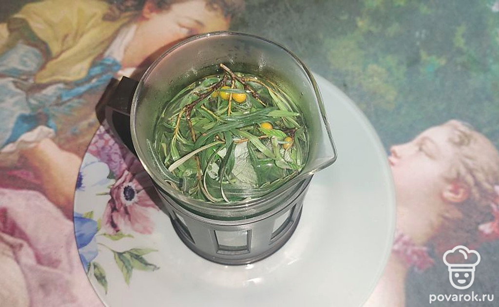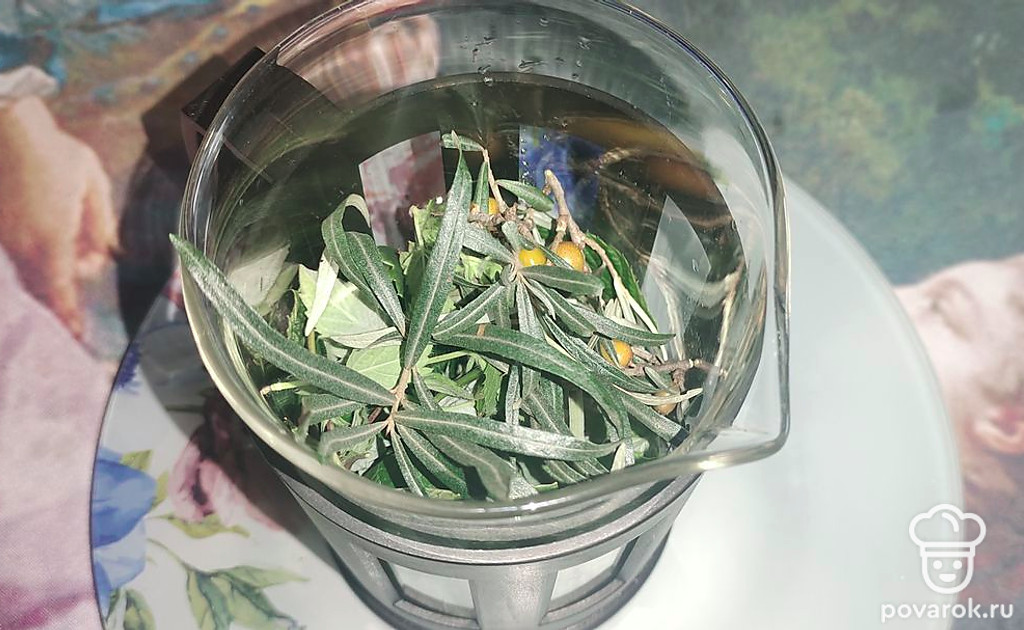 Помойте и обсушите листья облепихи, мяты, мелиссы и черной смородины.