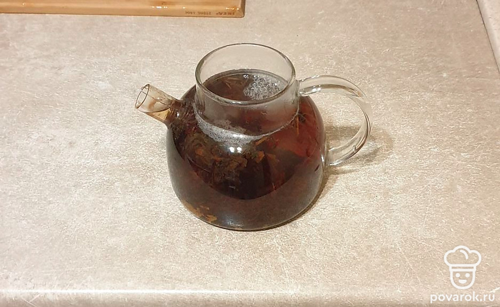В чайник для заваривания положите черный чай и залейте его кипятком. Оставьте на 5 минут.