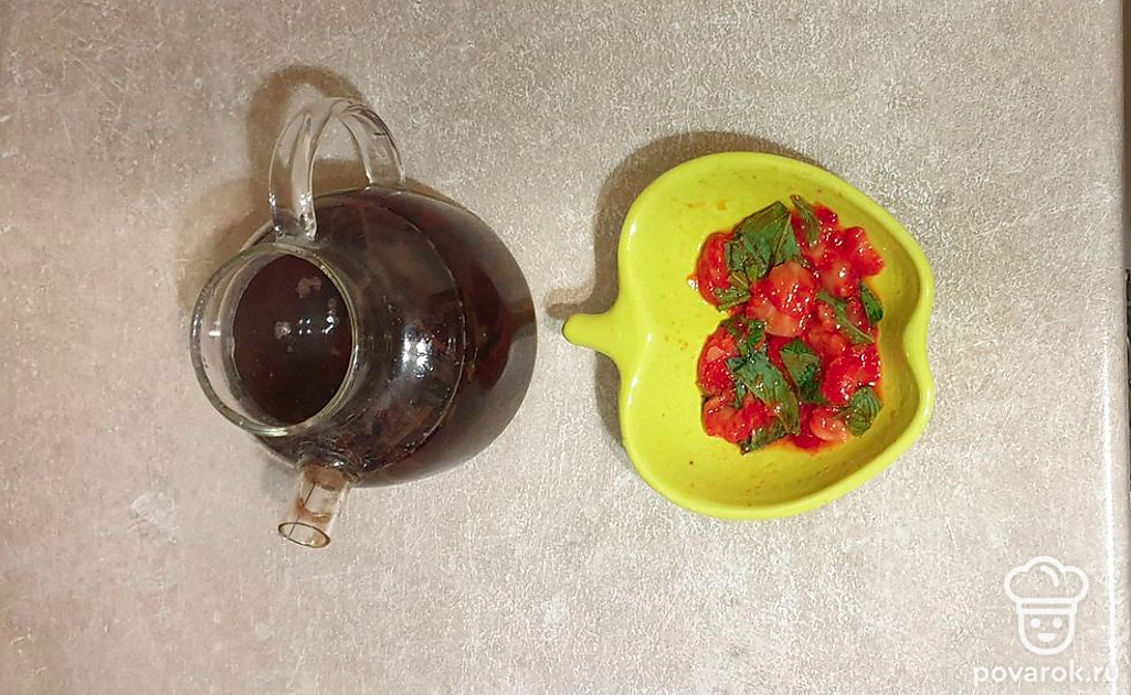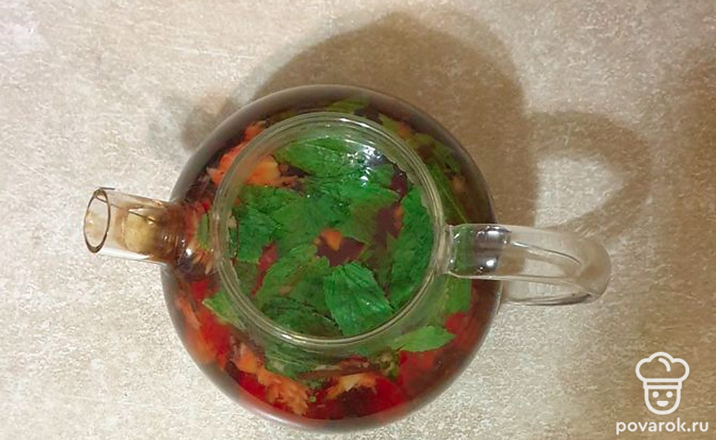 В чайник добавьте клубнику с мятой и дайте постоять еще около 5 минут.