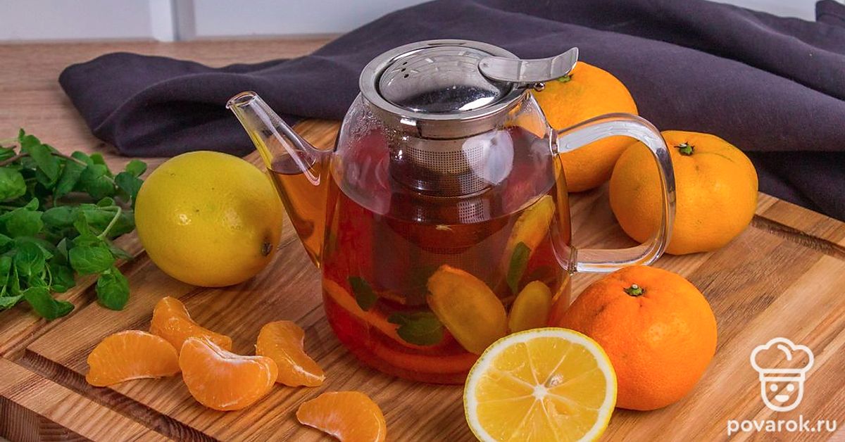 Черный чай с мандаринами, имбирем и лимоном