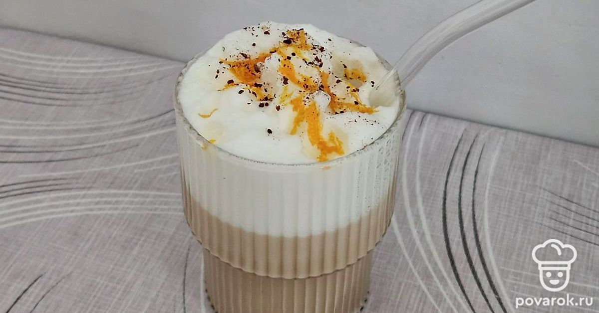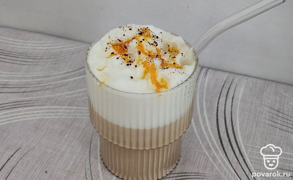 Апельсин помойте и натрите на мелкой терке. Украсьте напиток цедрой.