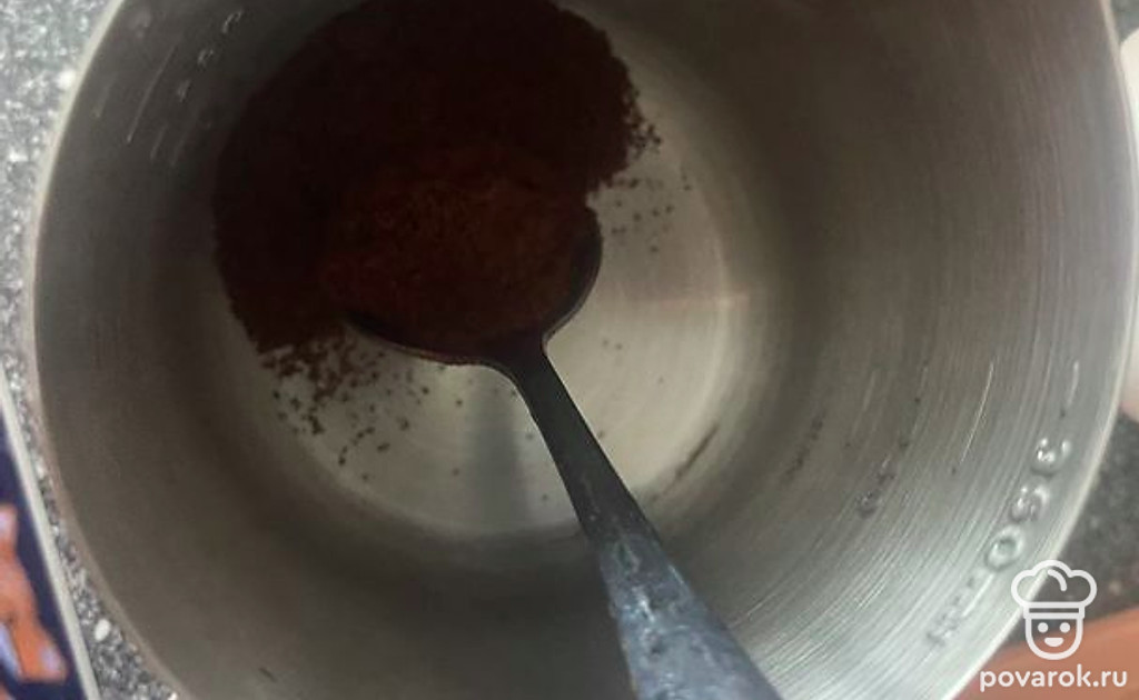 Выложите в турку молотый кофе. Натрите мускатный орех, добавьте бадьян.