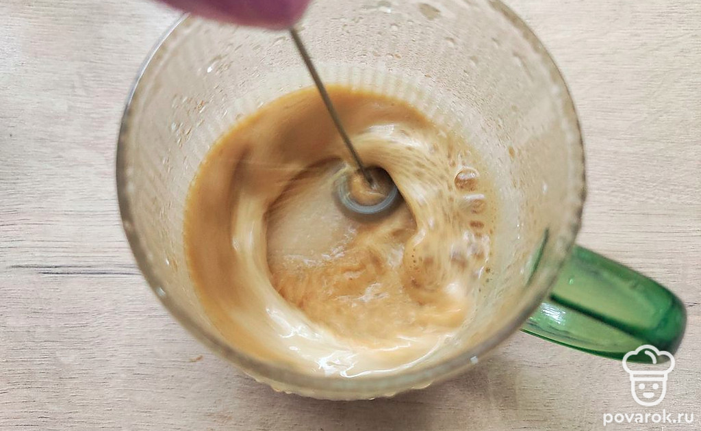 Взбейте кофе с сахаром.