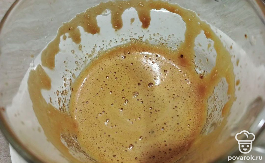 Добавим немного кипятка и взобьем капучинатором. Затем вливаем остальную часть.