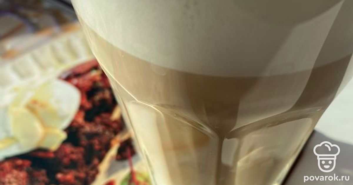 Пока греется молоко, приготовим кофе в кофеварке, либо же заварим растворимый. Соотношение я делаю 1/1, но это дело вкуса. Взбиваем молоко капучинатором, чем дольше это делать, тем пышнее больше пенка.