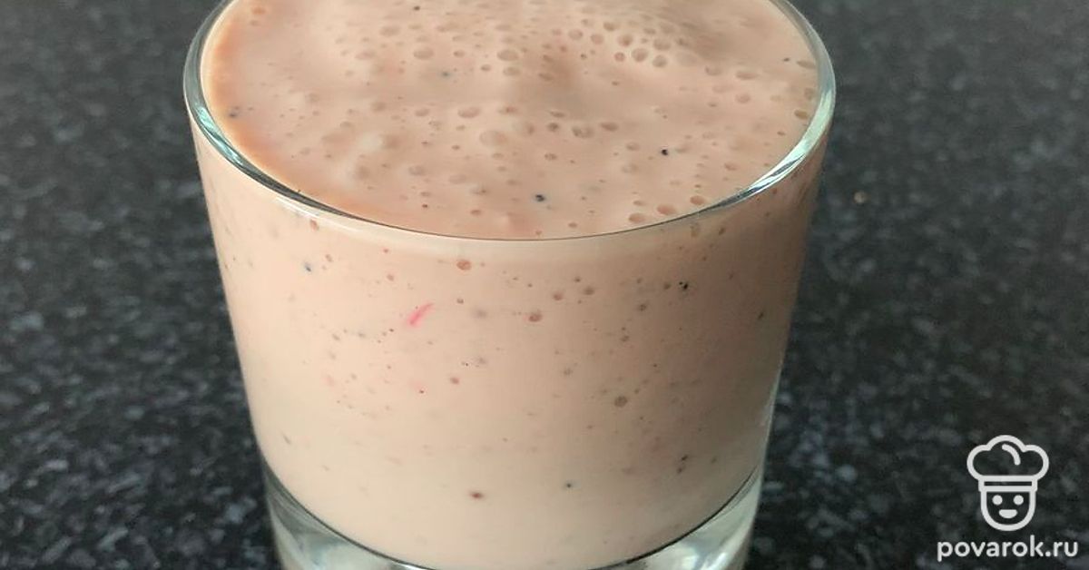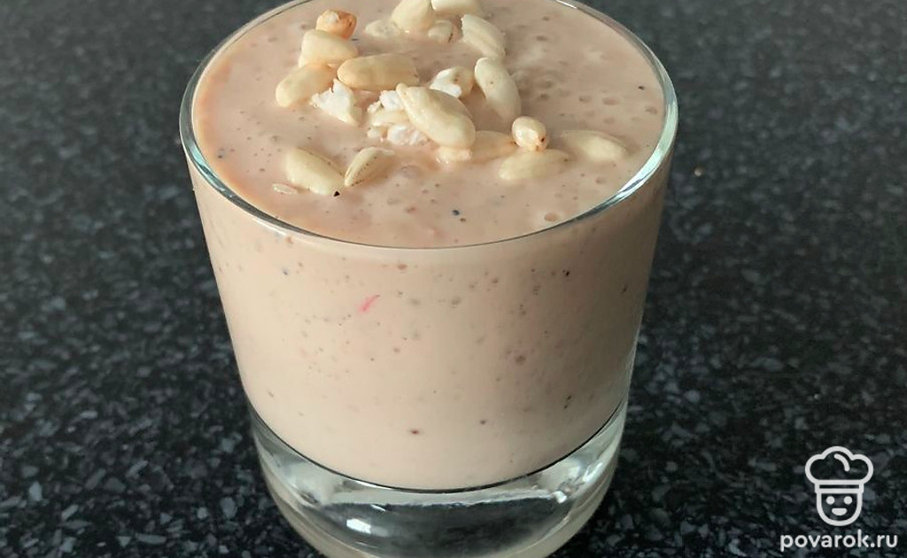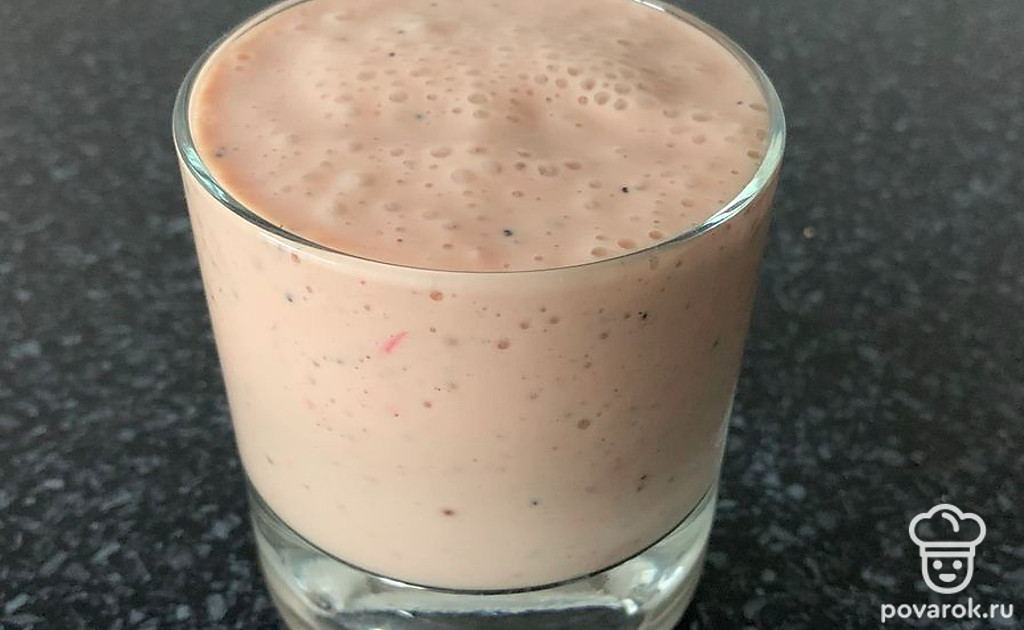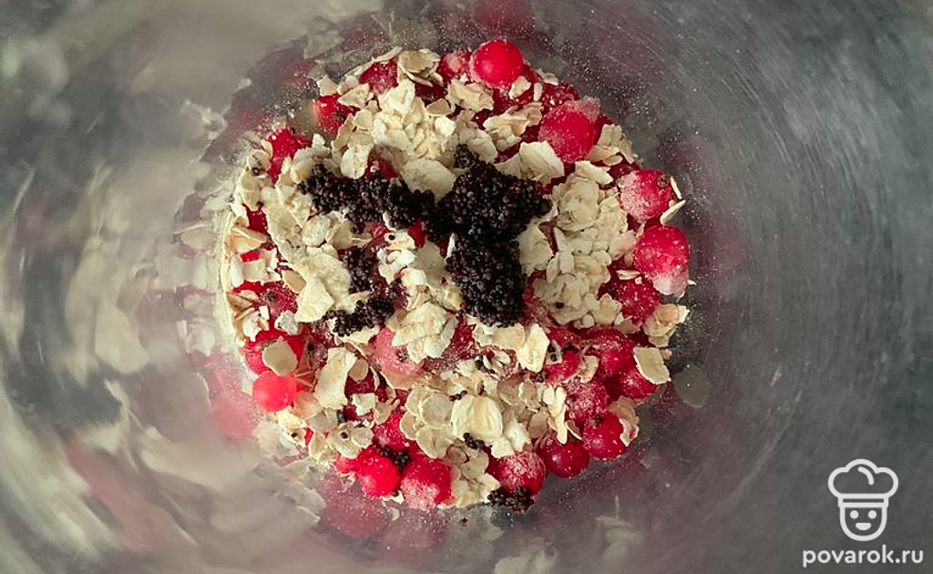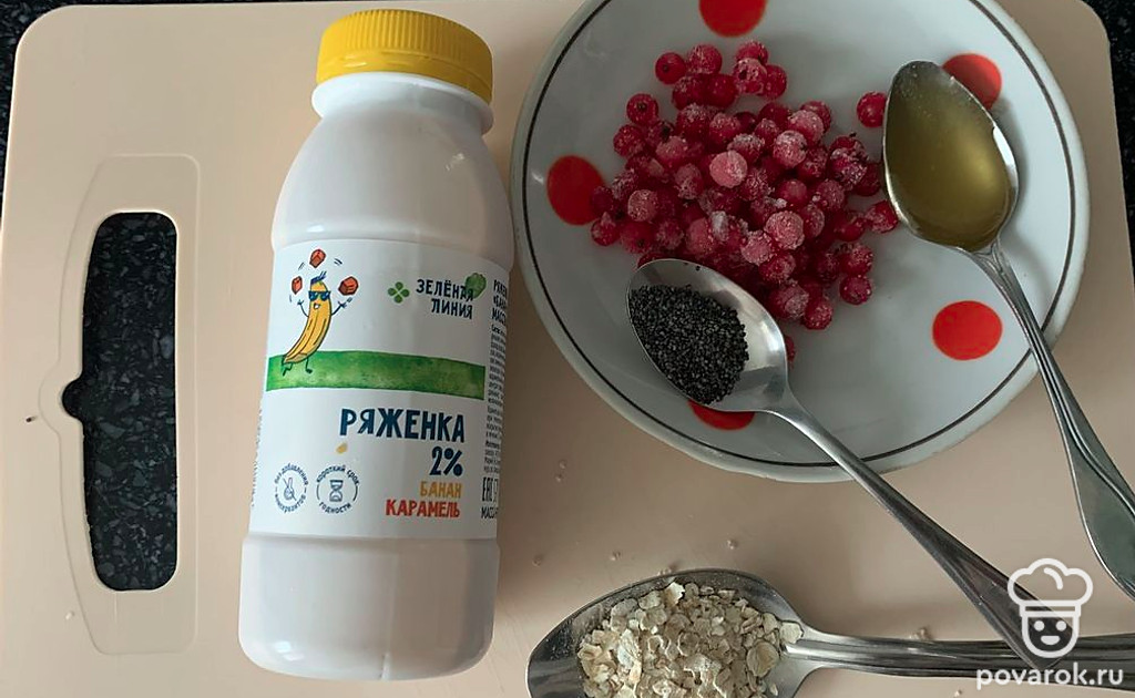 Быстрый завтрак из ряженки, красной смородины, овсяных хлопьев и мака