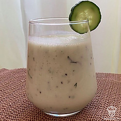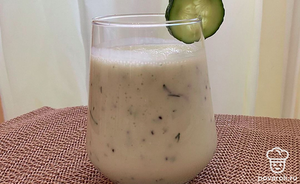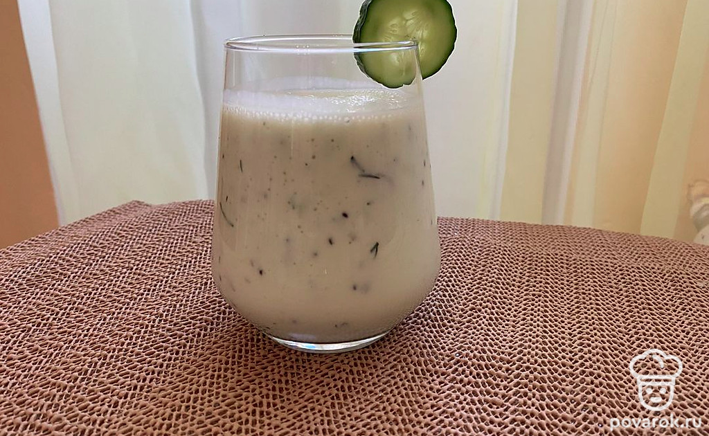 Подавайте в красивом прозрачном стакане. Можно украсить кусочком огурца.