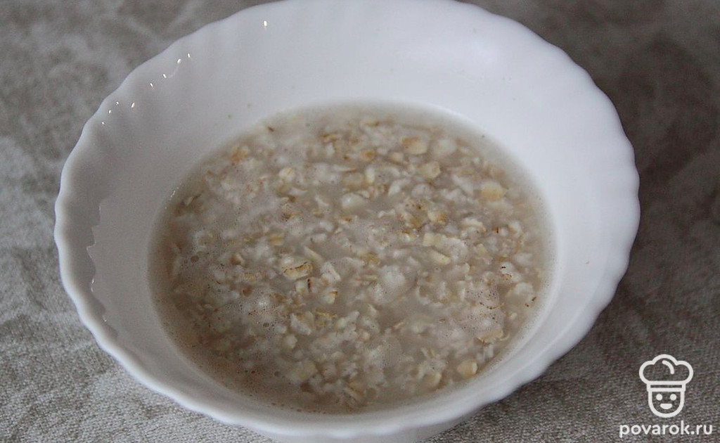 Овсянку замочить в кипятке на 5 минут.