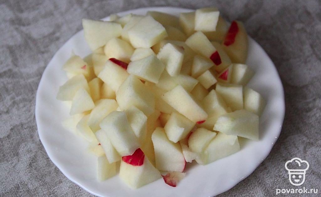 Очистить яблоко от кожуры. Нарезать.