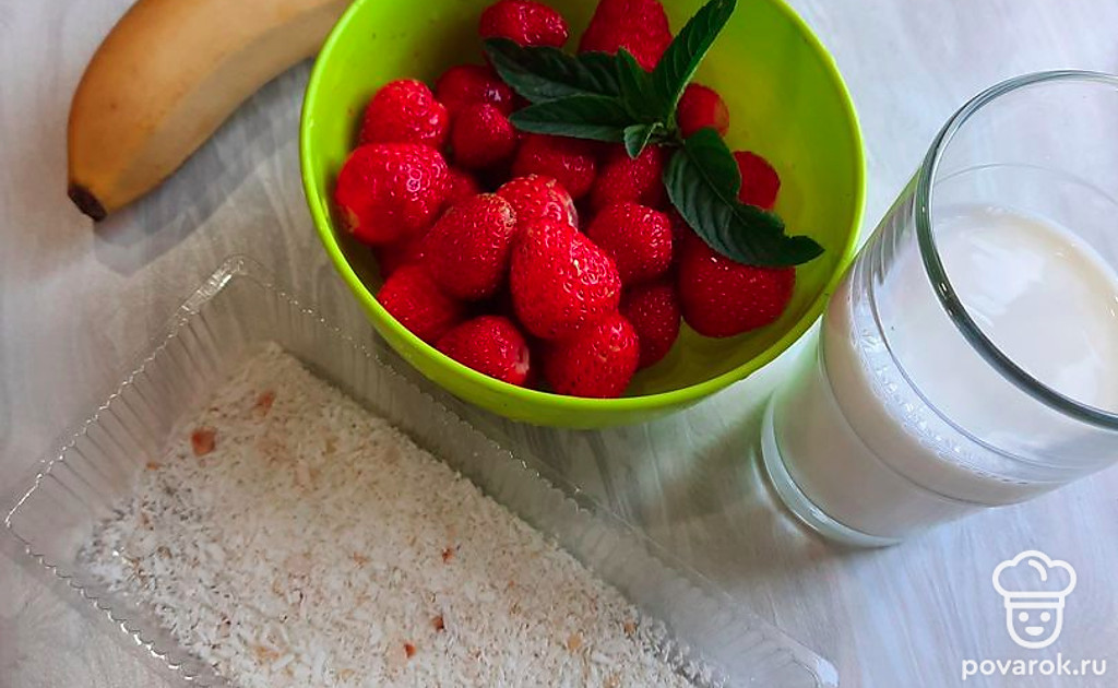 Клубнично-банановый смузи «Кокосовый рай» без сахара