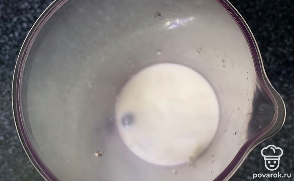 Заливаем кефиром и взбиваем до однородной массы.