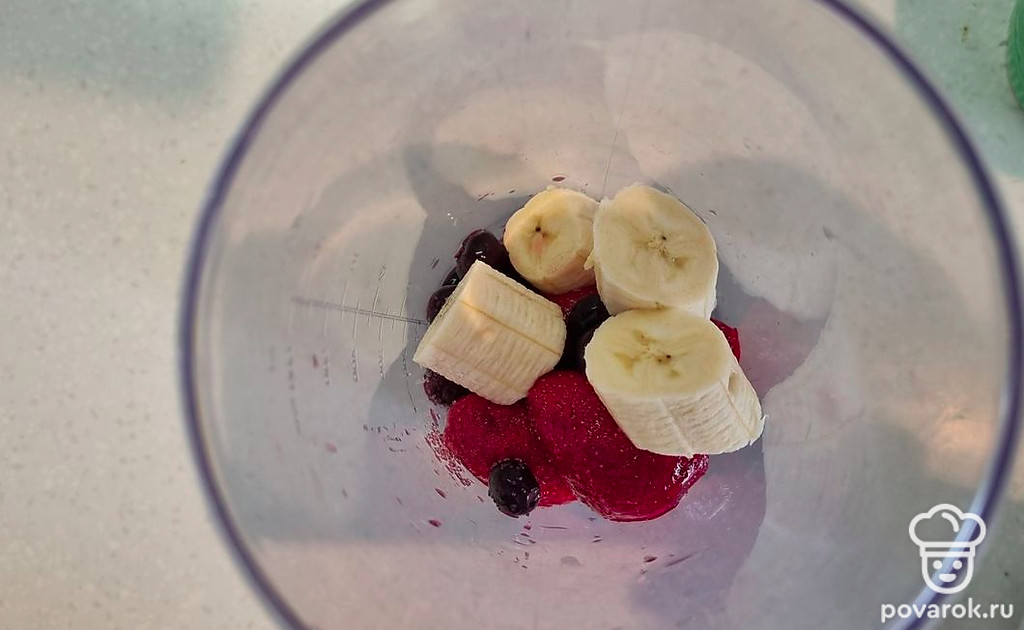 Сначала необходимо подготовить все ингредиенты. Ягоды помыть, банан очистить от кожуры.