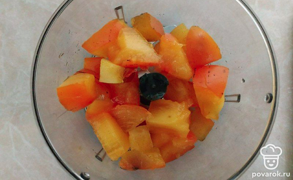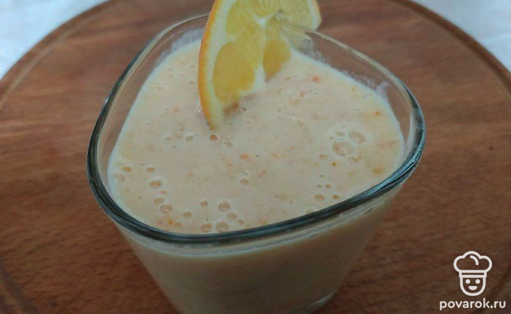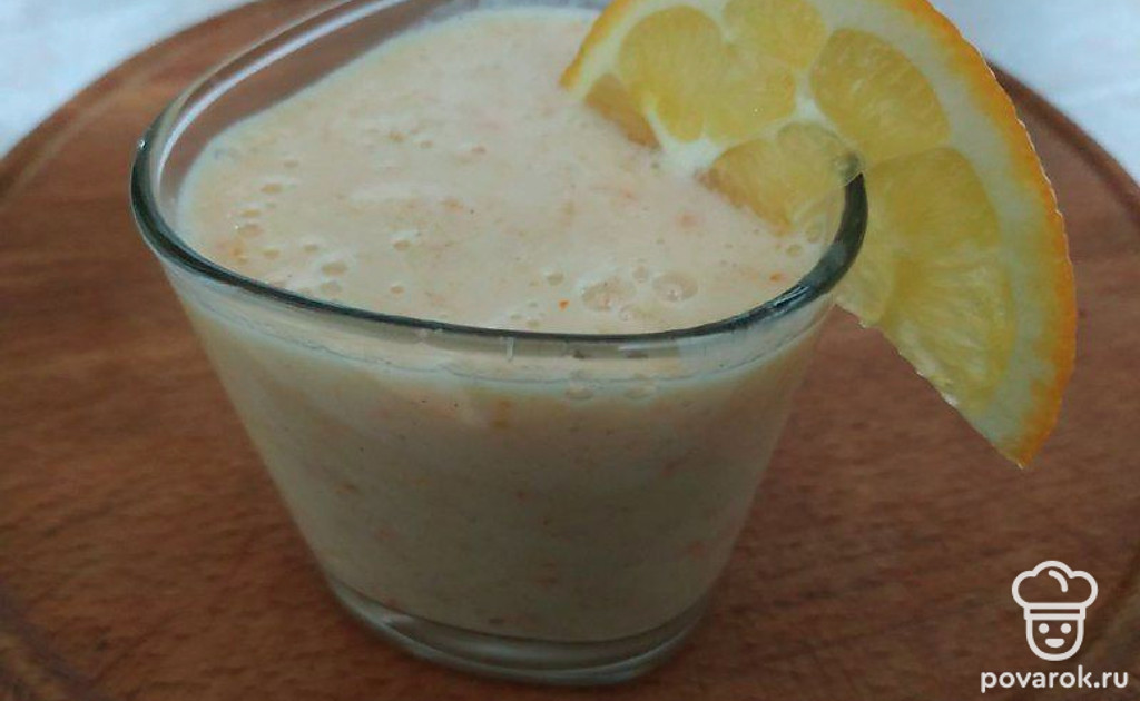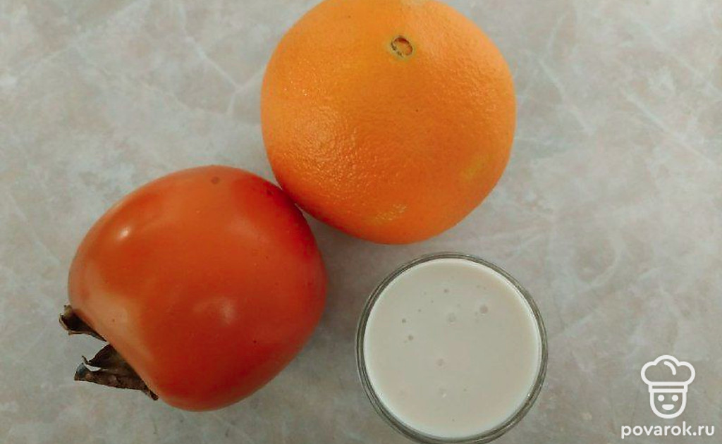Когда осенью на прилавках появляется яркая хурма, кажется, что засияло летнее солнце. Однако этот плод радует не только видом, а и сладким вкусом, сочностью. Хурму можно употреблять не только в виде фрукта, а и готовить из него вкусные, освежающие блюда. В данном случае вместе с апельсином и ряженкой он превращается в полезный, вкусный напиток. Учитывая, что он без добавленного сахара, его можно предлагать людям, которые предпочитают низкокалорийную еду.