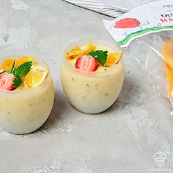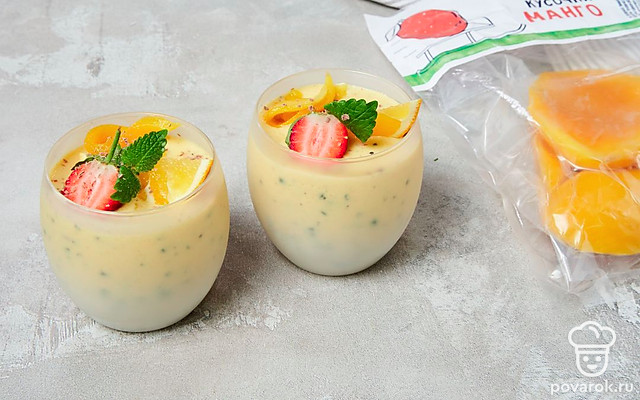 Смузи бывает разным — фруктовым, овощным или комбинированным. Ярким, нежным, сладким и невероятно вкусным получается напиток из тропических фруктов. Он прекрасно утолит жажду и зарядит энергией. Полезный коктейль насытит организм витаминами, минералами и микроэлементами. Готовить его можно как из свежих, так и замороженных фруктов — например, взять маракуйю и манго и соединить их с натуральным йогуртом и молоком. Пить смузи нужно сразу после приготовления.