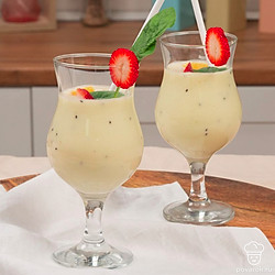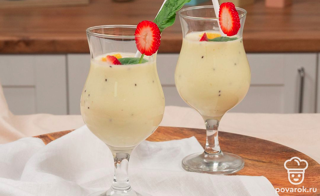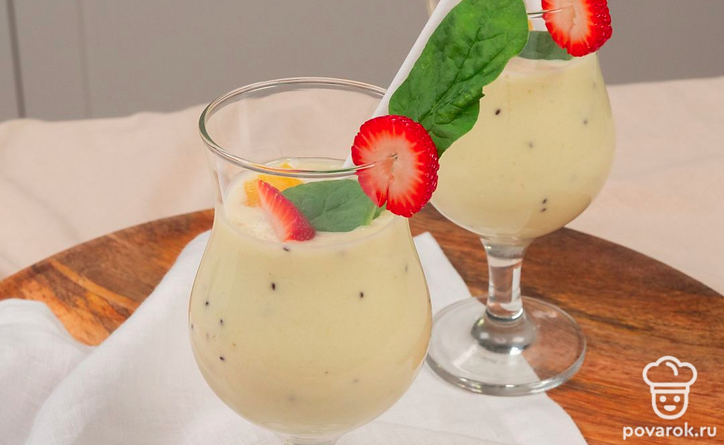 Смузи появился в США в начале 20 века, но завоевал популярность только в 60-х, когда пришла мода на здоровое питание. И в самом деле, благодаря способу приготовления, напиток сохраняет и сочетает витамины всех ингредиентов и дает энергию из-за большого количества углеводов. Единственным инструментом в рецепте является блендер, с помощью которого нужно будет смешать фрукты.