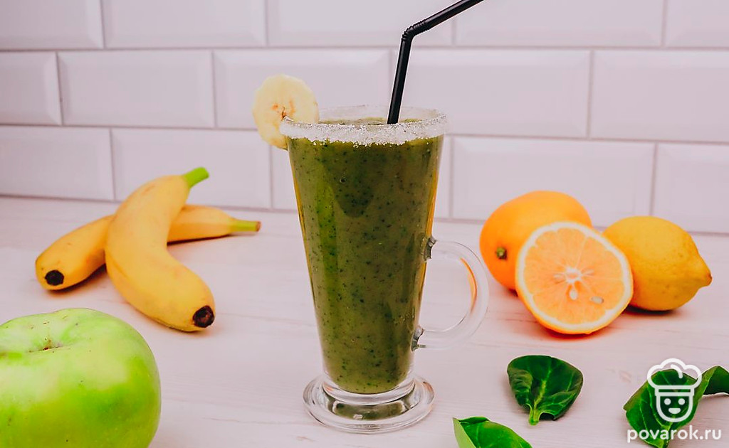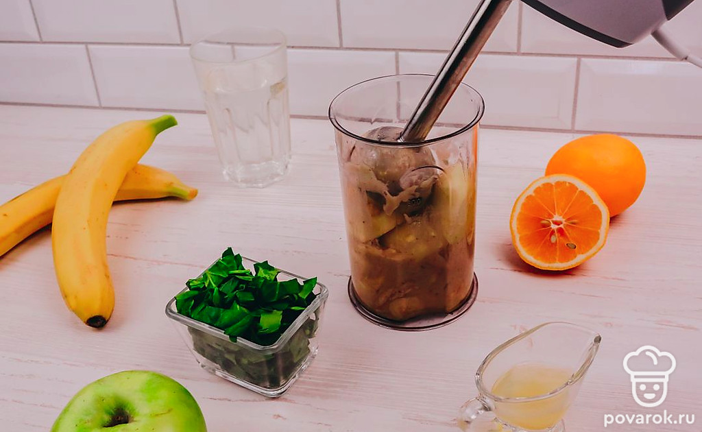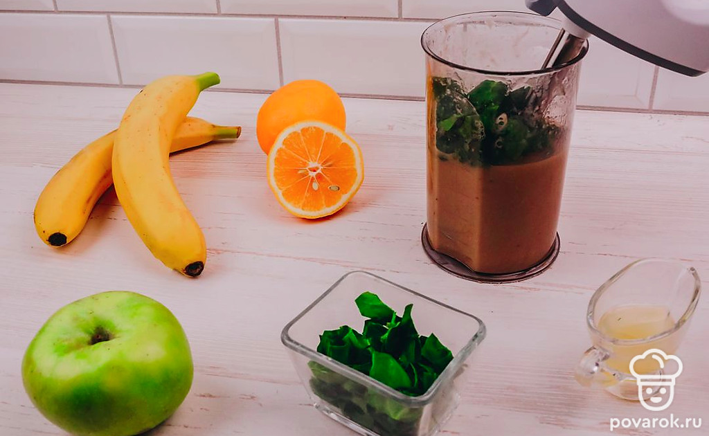 Польза смузи неоценима. В отличие от соков, в смузи сохраняются полезные волокна фруктов и овощей. Основные ингредиенты смузи — фрукты, ягоды, овощи, реже — травяные настои и семена. Рецепт смузи из яблока, банана, шпината и апельсина непременно оценят люди, ведущие здоровый образ жизни.