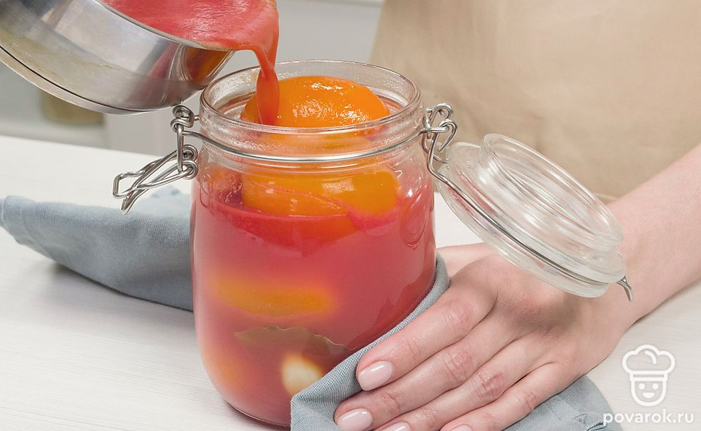 Врачи называют томат овощем долголетия. Красный цвет ему дает каротиноид ликопин. Он является мощным антиоксидантом и защищает клетки от повреждений. Ученые выяснили, что люди с высоким уровнем ликопина в крови меньше подвержены инсультам. Термическая обработка только усиливает пользу овоща. У каждой хозяйки свои заветные рецепты приготовления вкусных маринованных томатов на зиму. Маринованные помидоры в банках с добавлением томатного сока считаются одними из самых популярных.