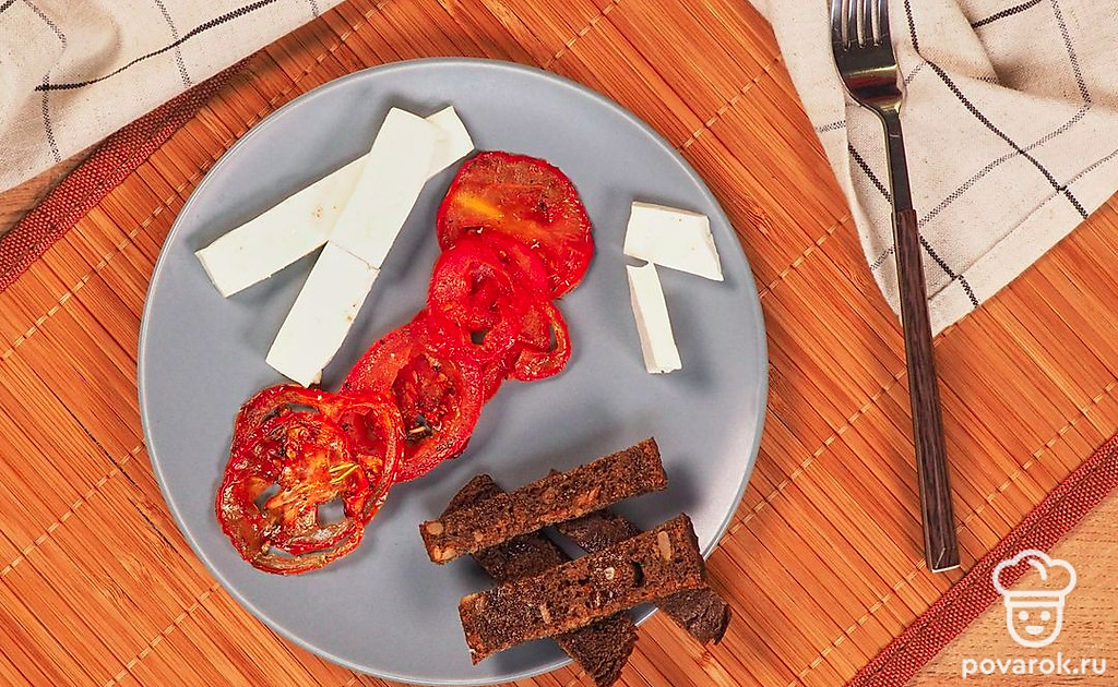 Подайте вяленые помидоры с сыром Фета и гренками из черного хлеба — эти продукты идеально сочетаются друг с другом по вкусу.