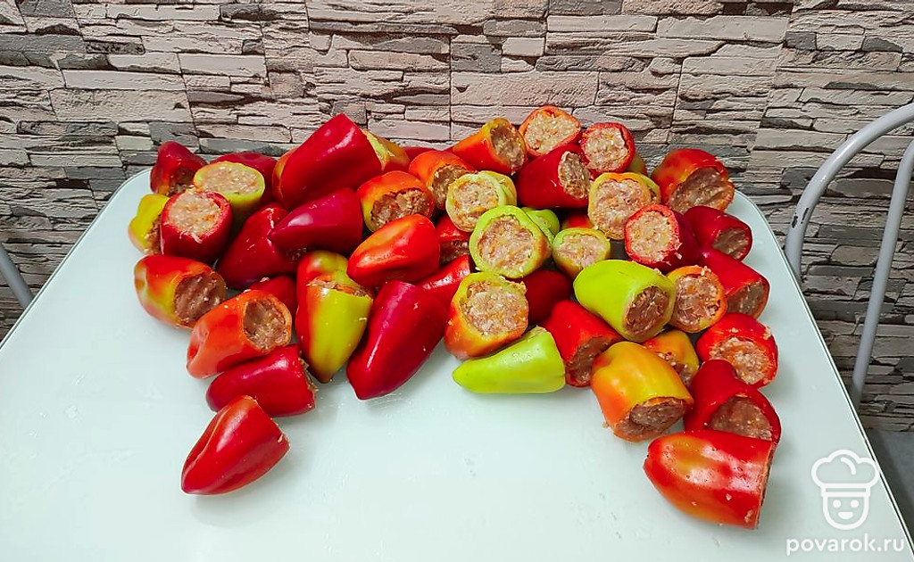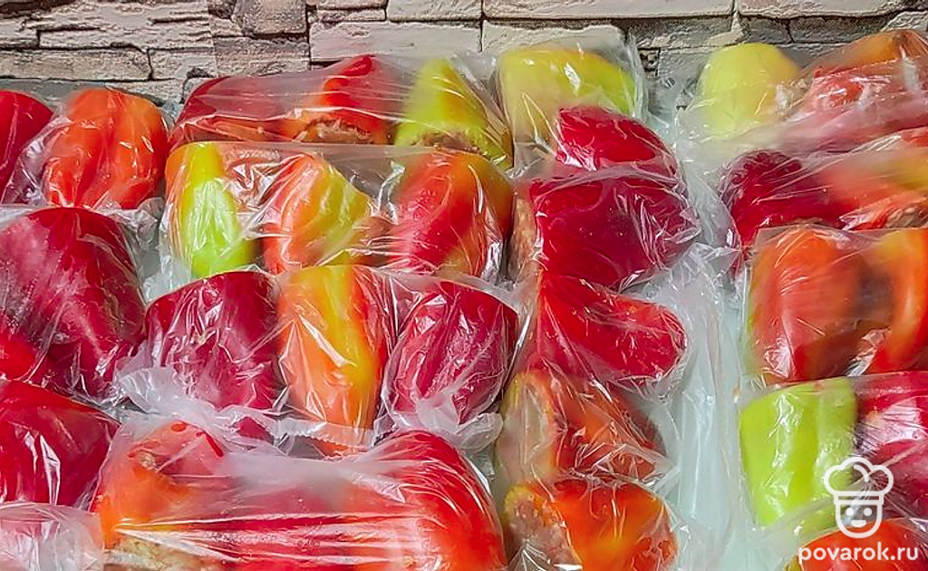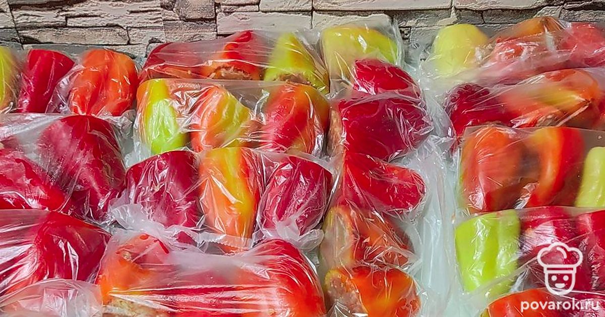 Начините перцы фаршем с рисом. Разложите по пакетам и отправьте в морозилку.