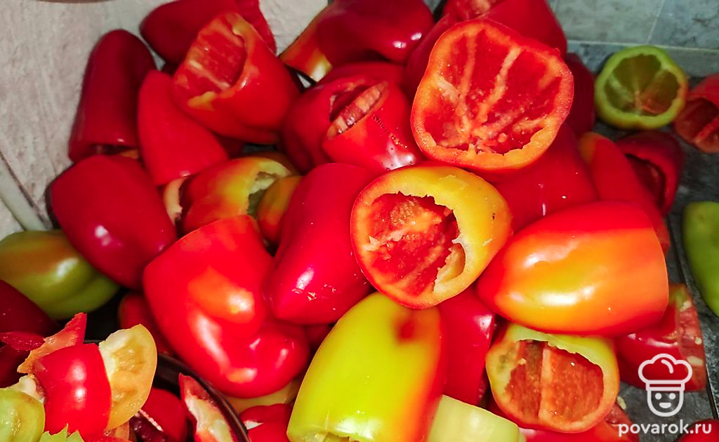Все перцы вымойте, срежьте плодоножку и уберите все семечки.