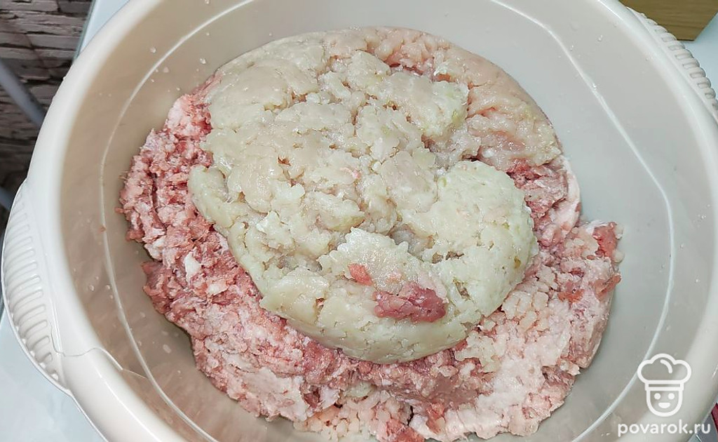 Перекрутите свинину и курицу. Смешайте два вида мяса.