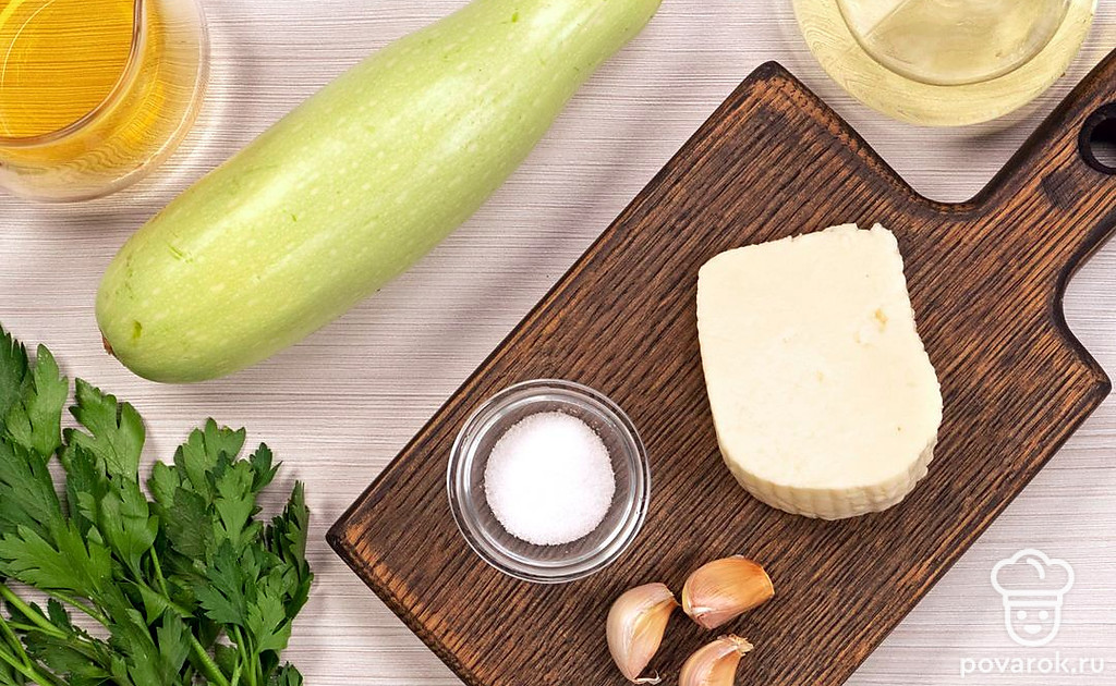 Кабачки и петрушку хорошо помойте, обсушите. Чеснок почистите и пропустите через пресс.