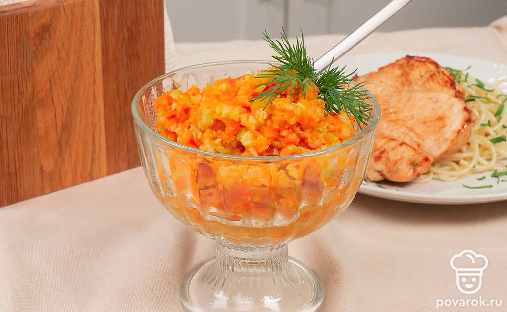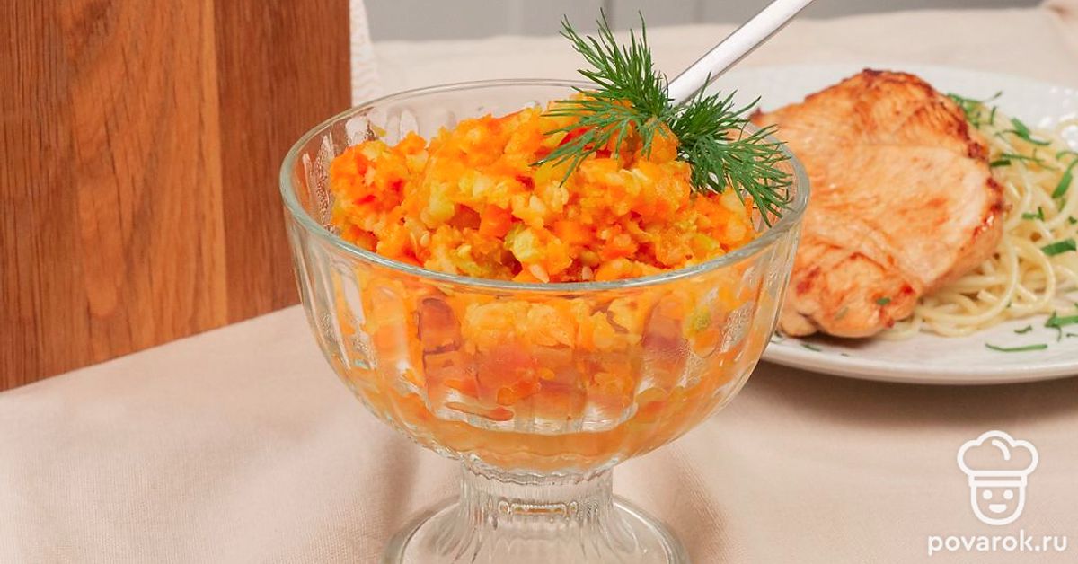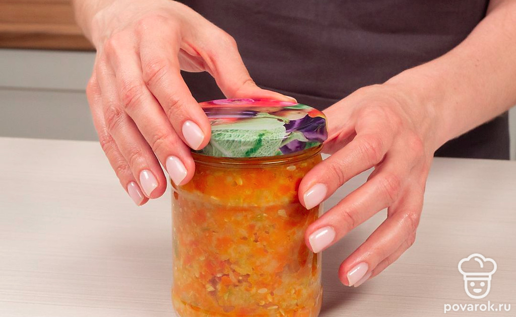 Кабачковая икра была изобретена в 30-х гг. советскими диетологами в рамках разработок здорового экономного питания и консервирования продуктов. Готовая кабачковая икра, прошедшая консервацию, сохраняет пищевые свойства на протяжении 3 лет. Благодаря этому продукт долгое время был включен в воинский рацион. Для армии икра упаковывалась не в стеклянные банки, как для розничной продажи, а в пятилитровые жестяные бочонки. Одним из самых популярных рецептов считается кабачковая икра с помидорами.
