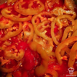 Приготовим перец в томате, чтобы угощать друзей и родных вкусными домашними заготовками. Рецепт несложный. Сладкий перец хорошо сочетается с помидорами.
