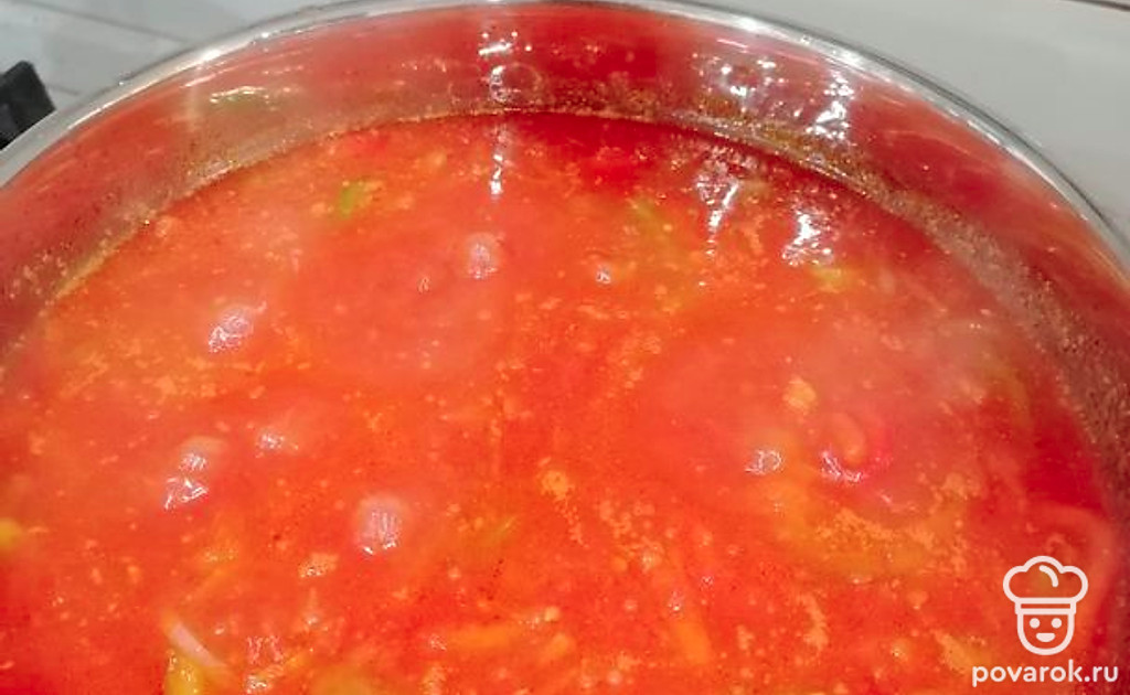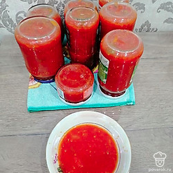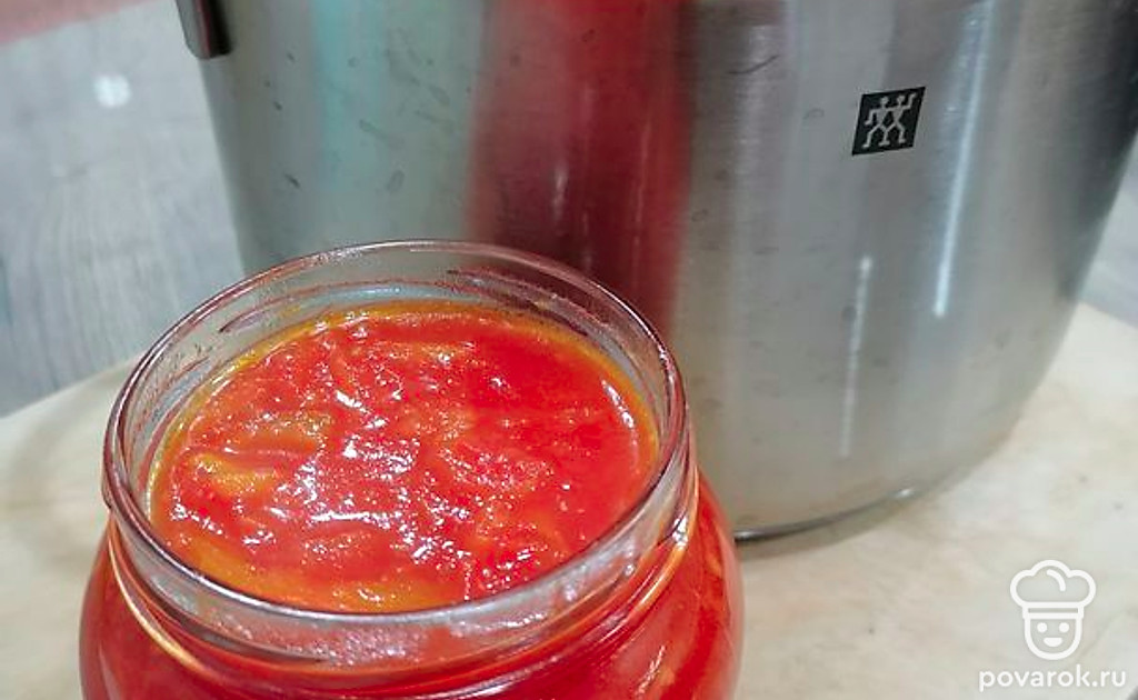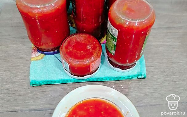 Этот рецепт самый любимый в нашей семье. Кроме томатов и болгарского перца, мы добавляем еще и морковь с репчатым луком. Получается очень вкусно. Обязательно попробуйте.