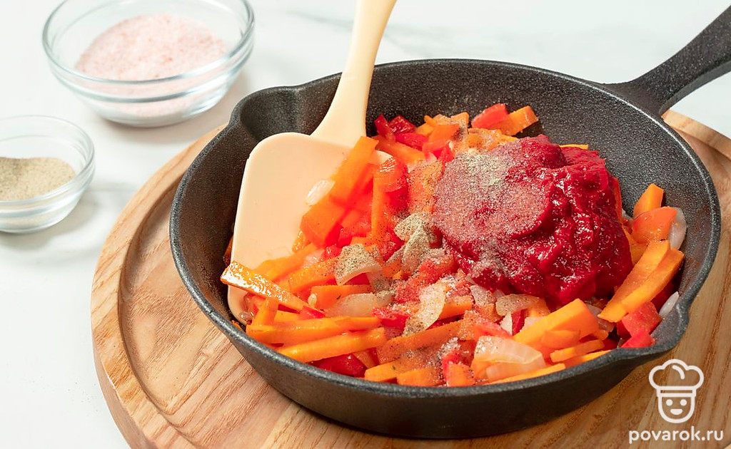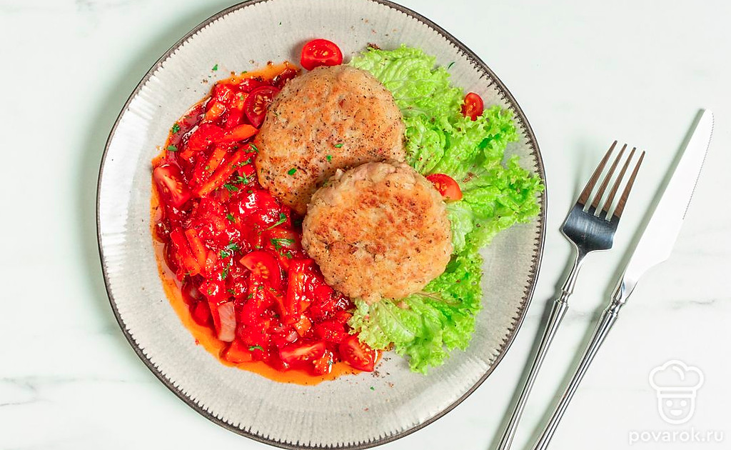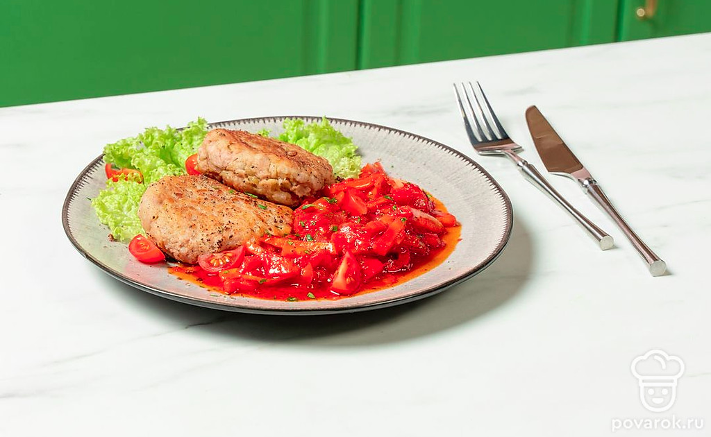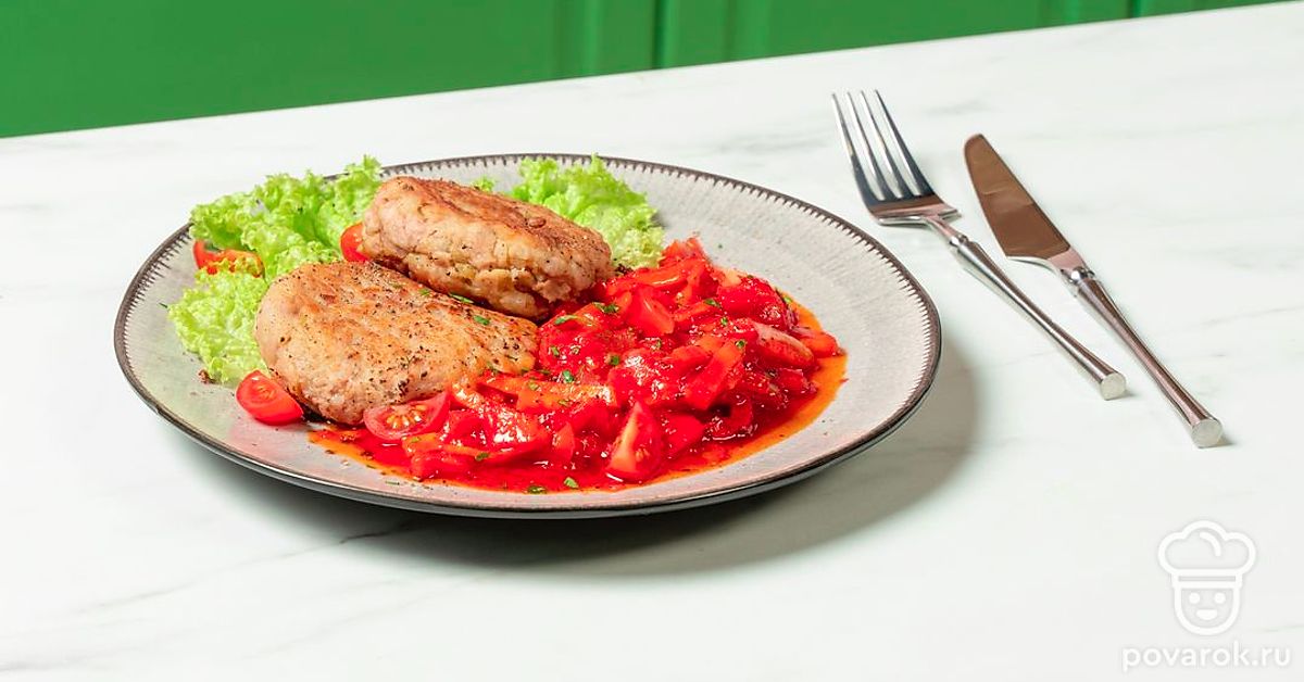 Хорошим дополнением к котлетам может стать соус. Вариантов его приготовления очень много, н мы решили остановиться на овощном варианте. Для него вам нужно приготовить основу, залить ее томатной пастой и приправить любимыми специями. Готовый соус получается похожим на рагу. Его хорошо подавать не только с котлетами, но и гарниром. Вы также можно пробить соус блендером. Тогда консистенция получится более однородной.