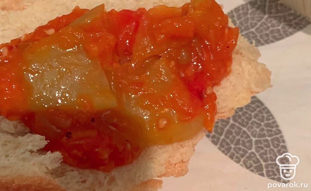 Все, что не вошло в банку, оставляем. Режем хлебушек, намазываем на него вкусное лечо и едим с удовольствием. Вы молодцы!