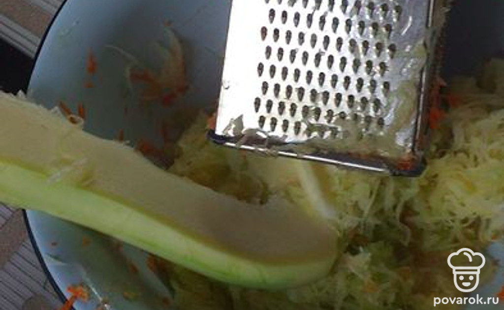 Кабачок очищаем и натираем на терке.