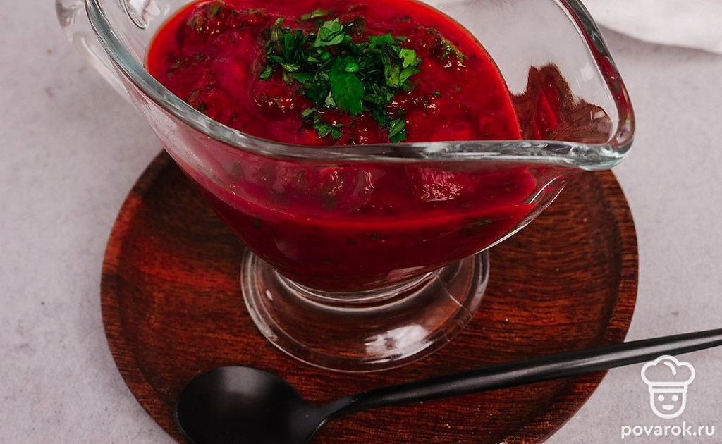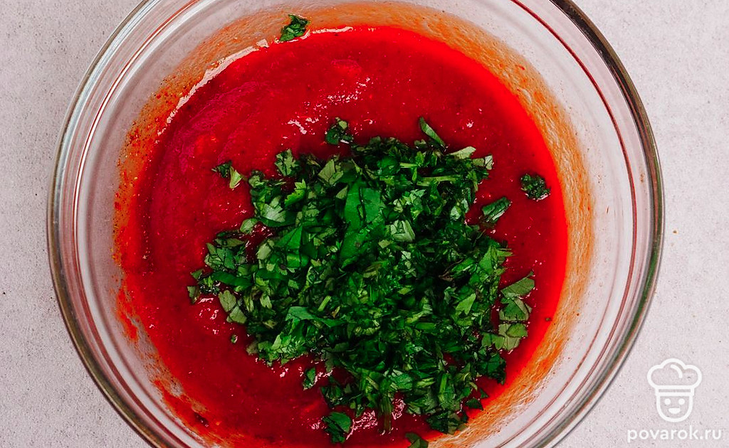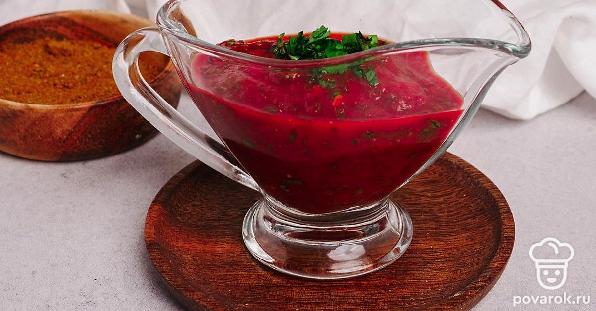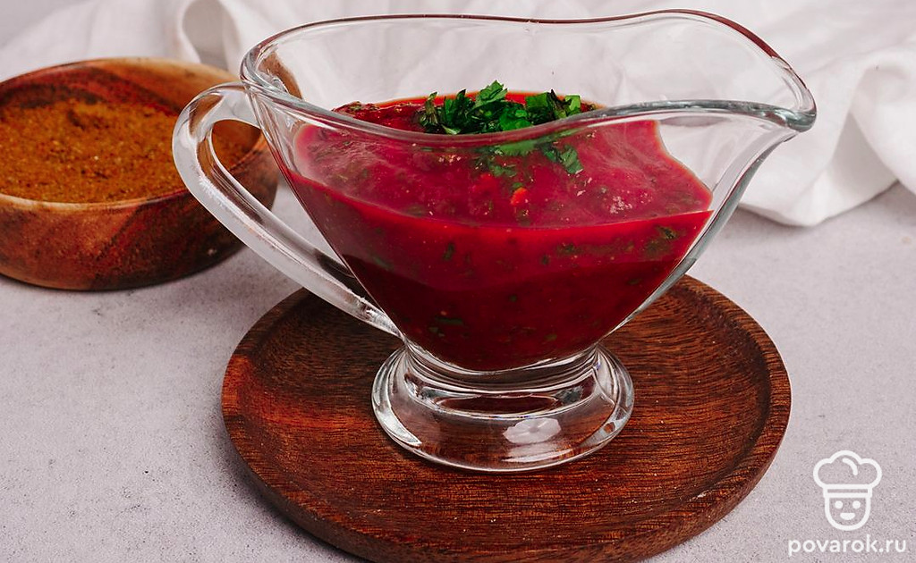 Сацебели — традиционный грузинский соус на основе томатов (иногда фруктов) с добавлением орехов, зелени и специй. Соус имеет густую консистенцию и ярко-красный цвет.