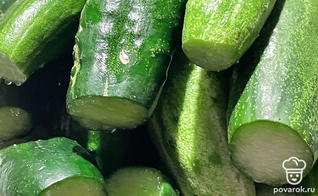 Огурцы замочите в воде на 4 часа, потом срежьте кончики.