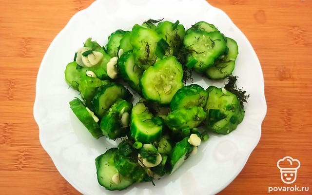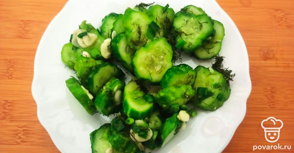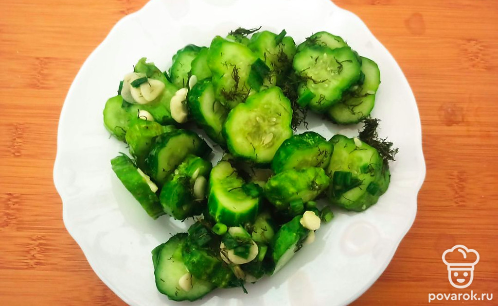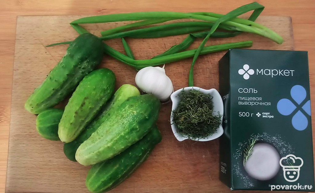 Вкусные и ароматные огурчики с чесноком и зеленым луком.
