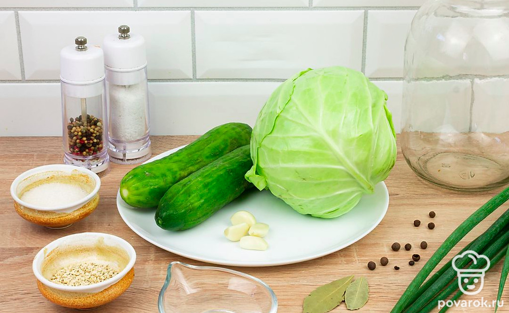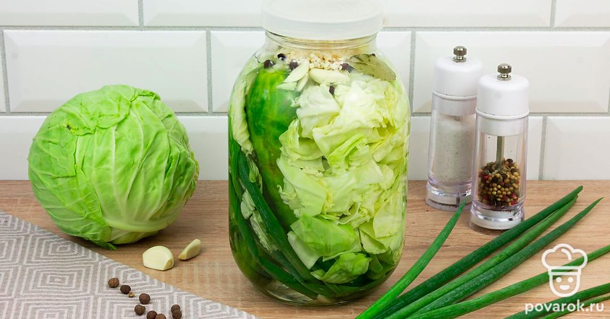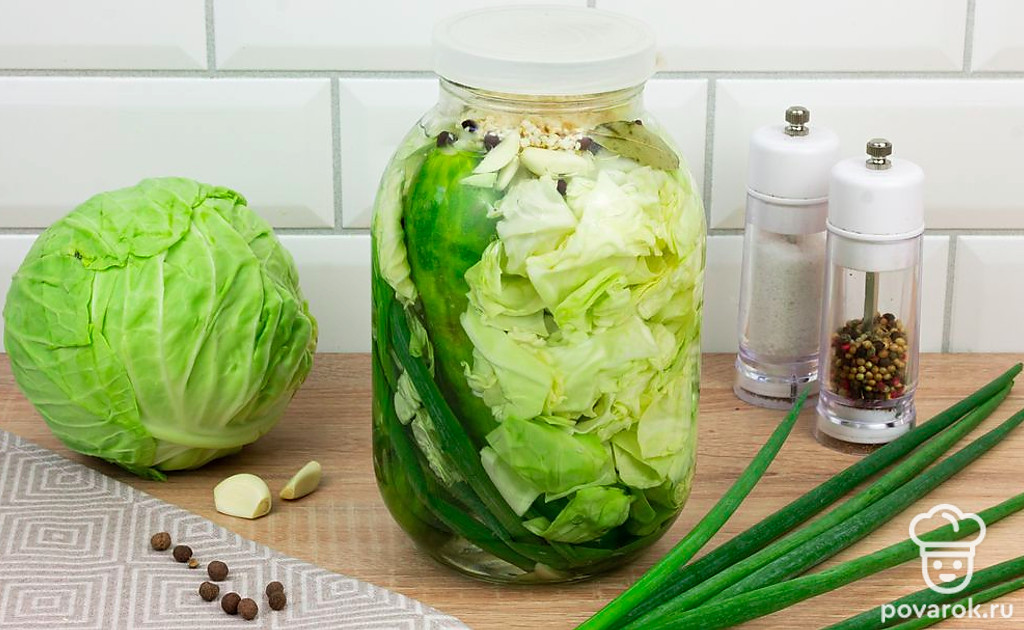 Русский народ всегда любил и делал заготовки на зиму из огурцов. Часто большой урожай огурца либо едят в свежем виде, либо заготавливают баночки на зиму. Без хрустящих огурчиков не обойдется ни одно застолье. Заготовка огурцов с капустой, зеленым луком и чесноком всегда дополнит обеденный стол и подойдет ко многим блюдам. Банки не нужно закатывать и стерилизовать. Именно этим рецепт и прост в своем приготовлении!