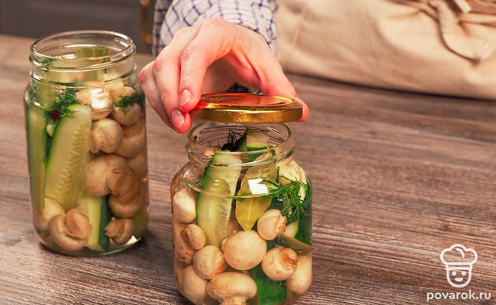 Доступность ингредиентов позволяет в любой момент воспользоваться рецептом маринованных огурцов с шампиньонами. Мариновать грибы несложно, если следовать пошаговой инструкции. Главное правило консервации — стерильность банок и крышек. Они обязательно должны пройти термообработку, просто вымыть горячей водой недостаточно. В плохо обработанной таре продукт мало хранится и быстро портится.