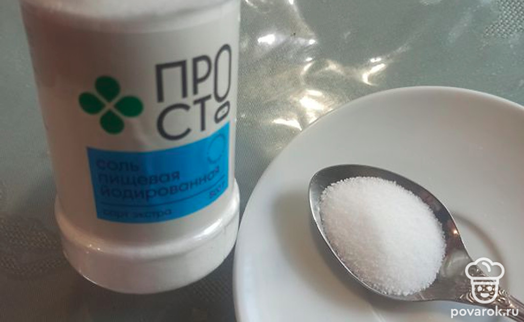 Дать постоять 10 минут, слить рассол, добавить 2 столовые ложки соли и столовую ложку сахара.
