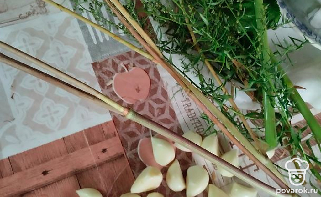 Чеснок почистить, промыть. Веточки укропа, тархуна и листья хрена промыть, просушивать не надо.