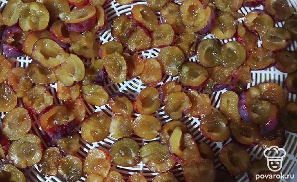 Вяленые сливы сложить в банки добавить специи, соль, сахар, растительное масло убрать в холодильник.