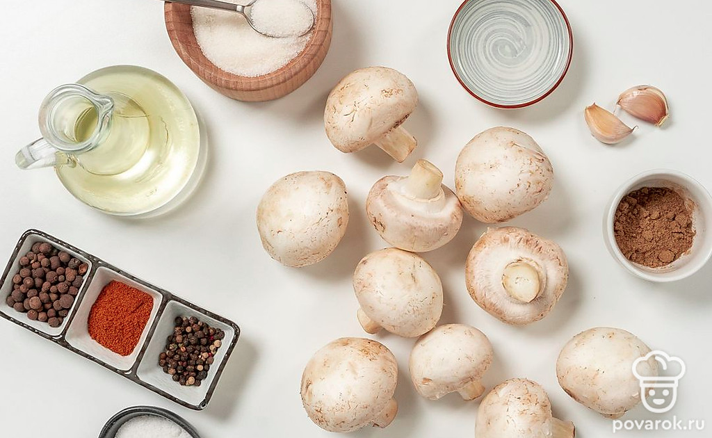 Грибы любят в разных странах, но особое значение блюда из них имеют в России. Наиболее распространенный вид грибов в российских магазинах — шампиньоны. Их можно готовить разными способами, но особенно вкусными получаются маринованные пряные шампиньоны. При покупке выбирайте чистые, упругие грибы без повреждений, белого цвета. Если купили и сразу не приготовили грибы, сохраните их. Лучше всего шампиньоны хранить в контейнере с крышкой, прокладывая каждый слой пергаментом или бумажным полотенцем.