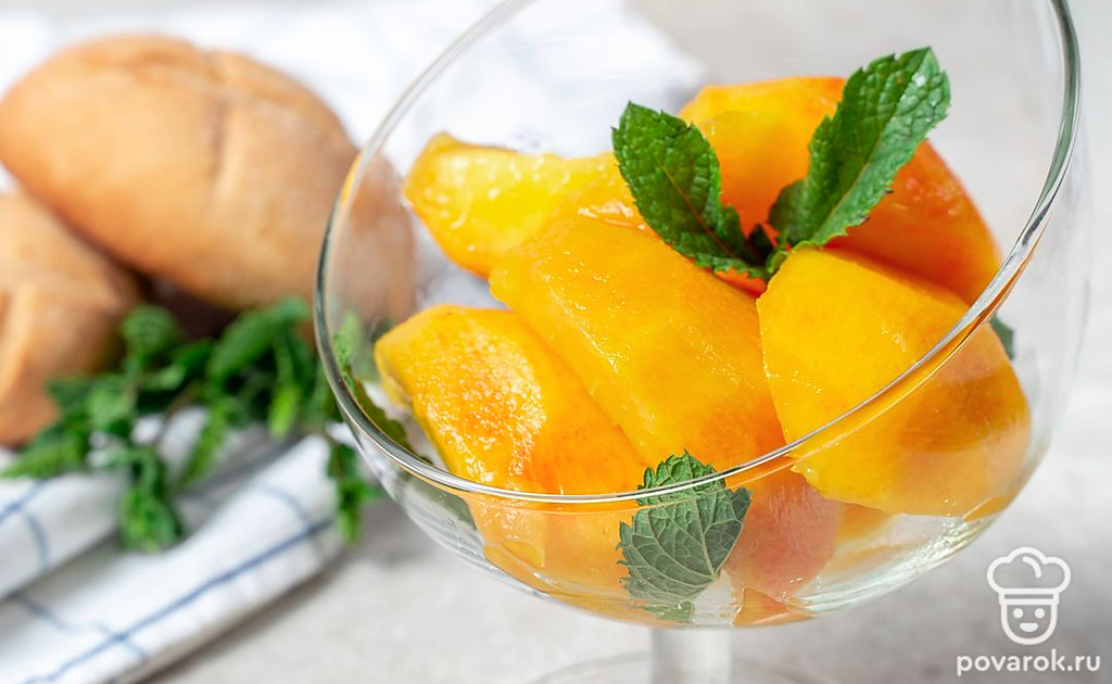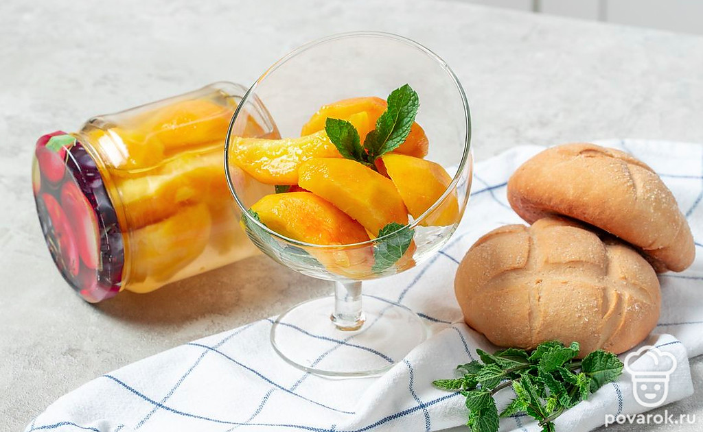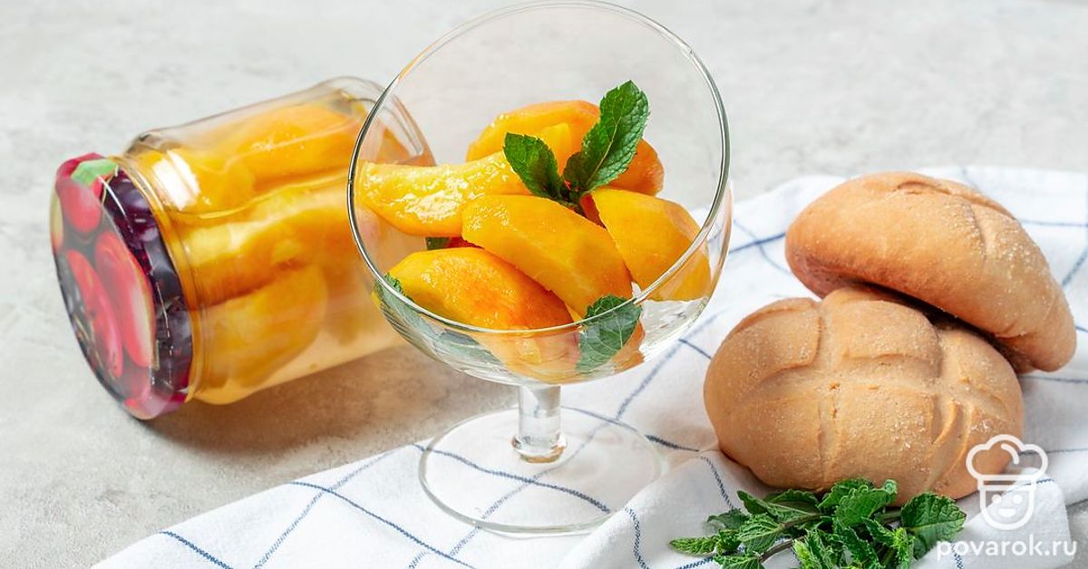 Персики в собственном соку — яркое, вкусное и богатое витаминами лакомство, которое без особых усилий можно приготовить на зиму. Для заготовки рекомендуется брать только спелые плоды, с них заранее желательно снять кожицу и удалить косточку. Кроме фруктов потребуется совсем немного сахара и воды. На создание компота уйдёт около часа, из них активное время на кухне менее получаса.