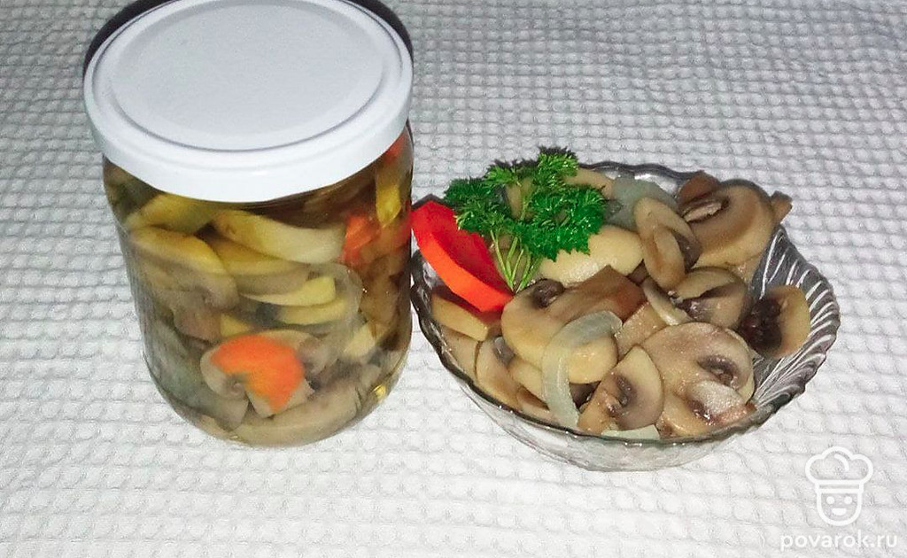 Маринованные шампиньоны — это достаточно популярное во многих странах блюдо, которое зачастую используют как закуску или в качестве дополнения салата. Грибы, приготовленные с морковью и луком поистине русское блюдо, которое не стыдно подавать на стол.