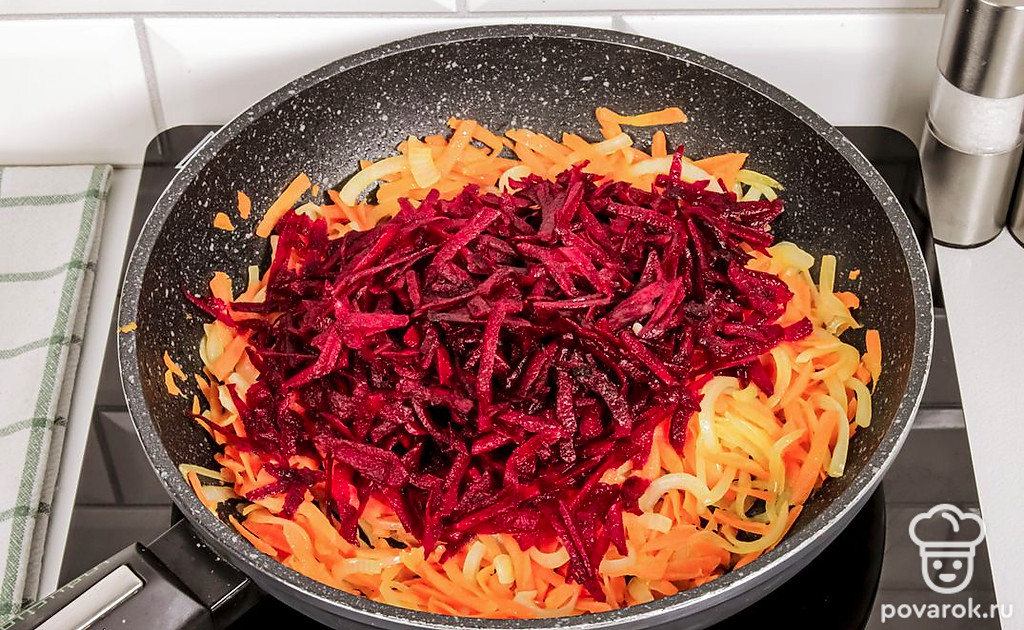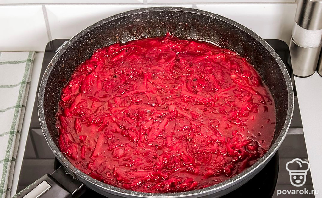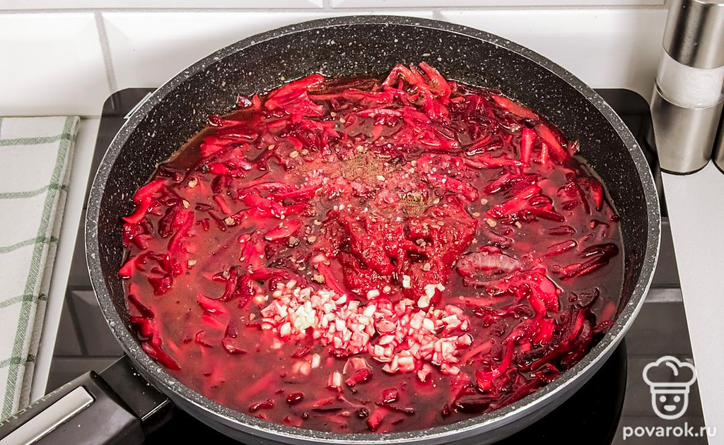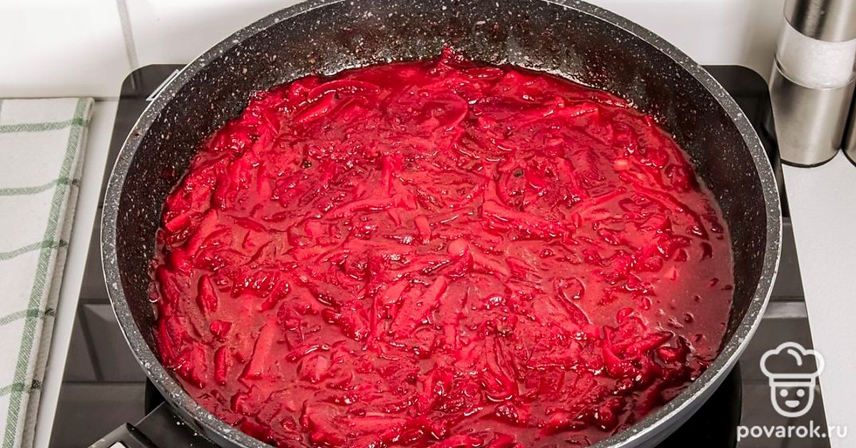 Тщательно перемешайте ингредиенты и тушите на среднем огне 8-10 минут. Зажарка для борща готова!