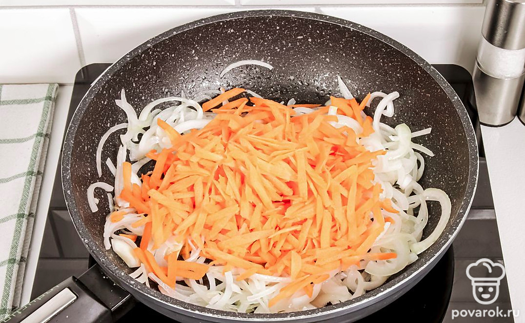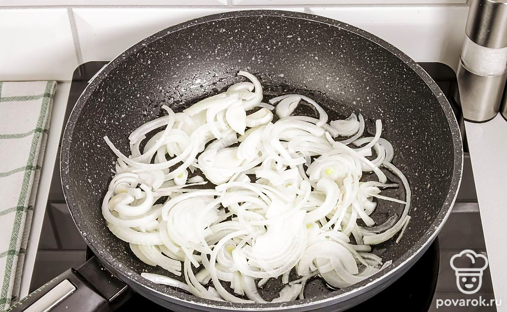 Выложите лук на предварительно разогретую сковороду с растительным маслом.