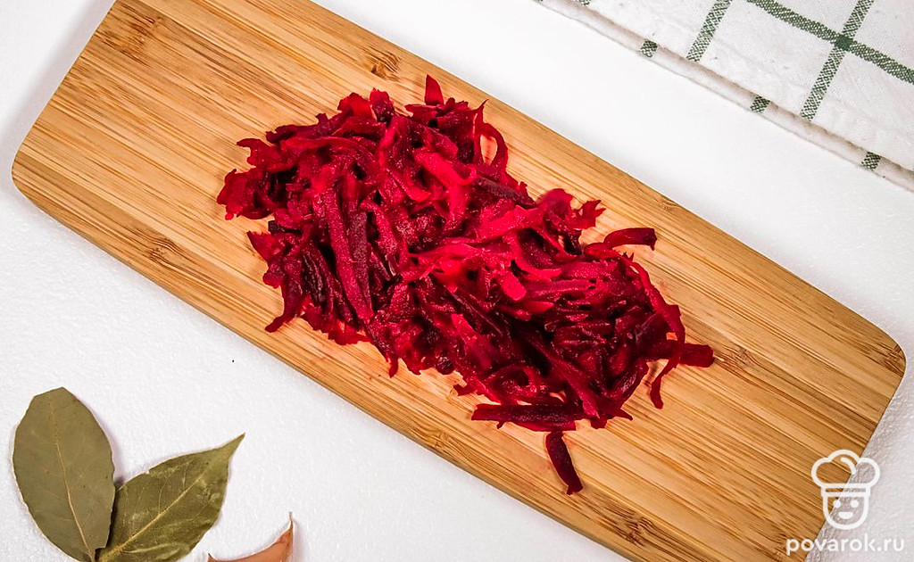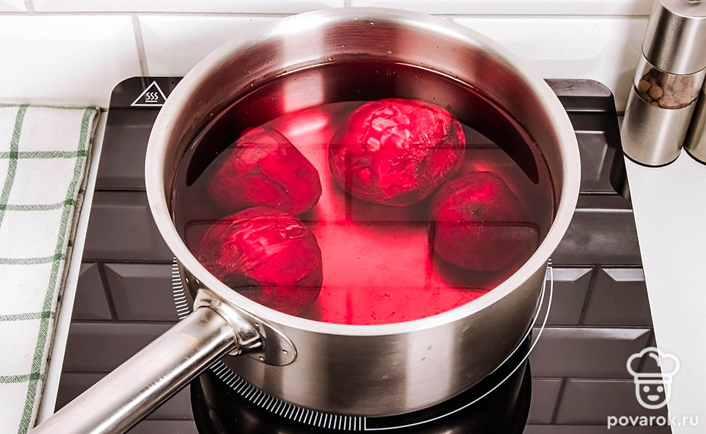 Отварите свеклу до готовности. Если вы готовите из свеклы среднего размера, достаточно будет 20-25 минут. Крупная свекла варится чуть больше – 30-35 минут.
