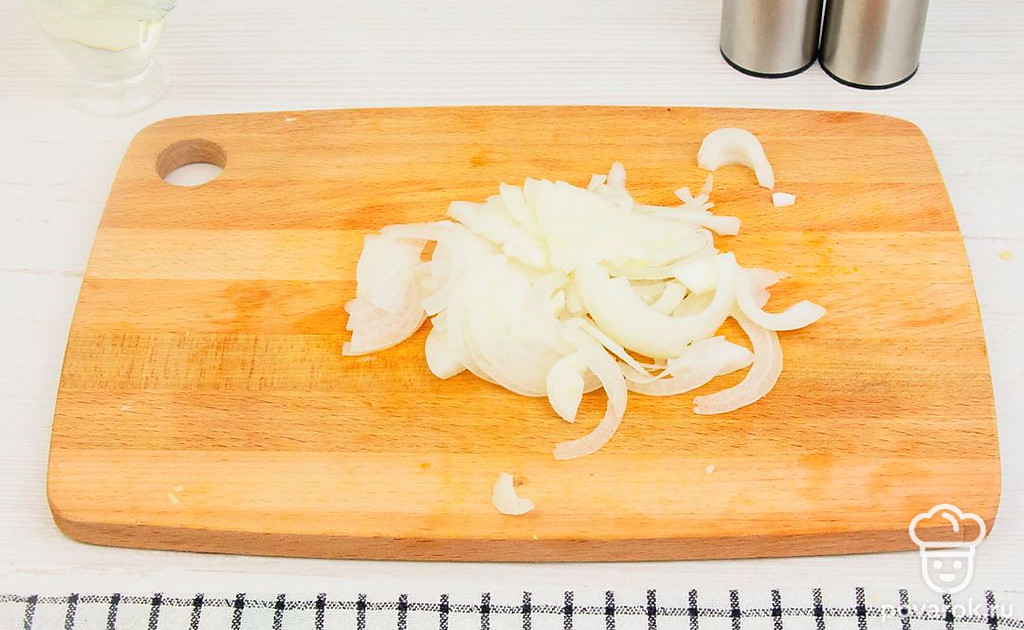 Мелко порубите чеснок, а лук нарежьте полукольцами.