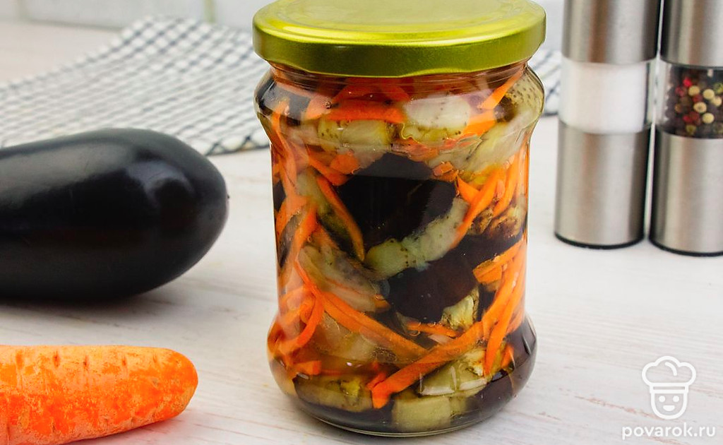 Сохранить вкус баклажанов и моркови на зиму просто — приготовьте из них универсальную холодную закуску к мясу и другим блюдам. Помните, что баклажаны сильно горчат, если готовить их сразу после нарезки. Дайте нарезанному овощу “подышать”, чтобы он не испортил вкус всего блюда.