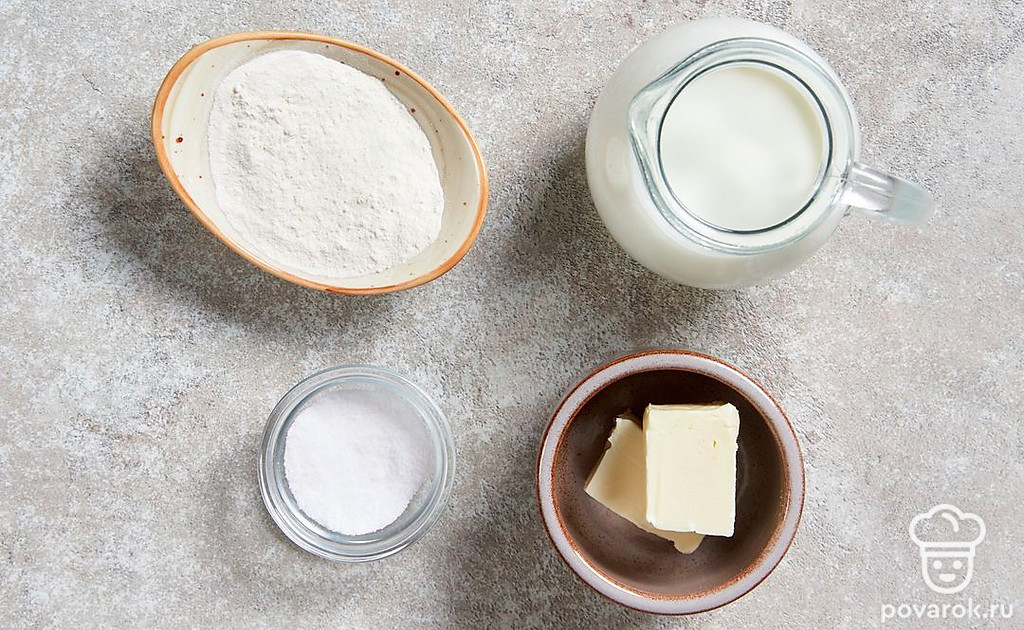 Достаньте из холодильника молоко и сливочное масло, дайте ему согреться при комнатной температуре до полного размягчения. Просейте муку через мелкое сито. Подготовьте сковороду с высокими бортиками или сотейник, а также соусник.